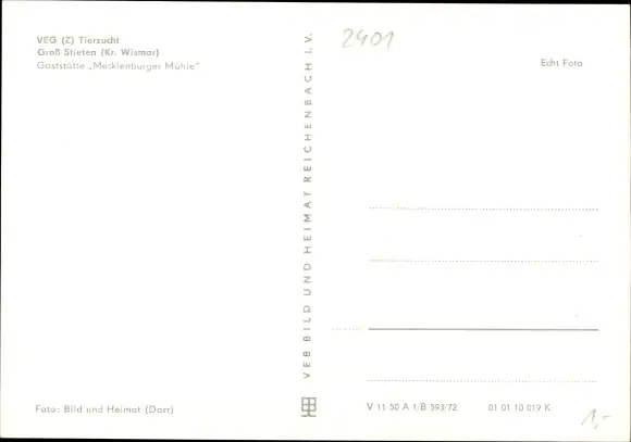Ak Groß Stieten in Mecklenburg, Gaststätte Mecklenburger Mühle, VEG Tierzucht