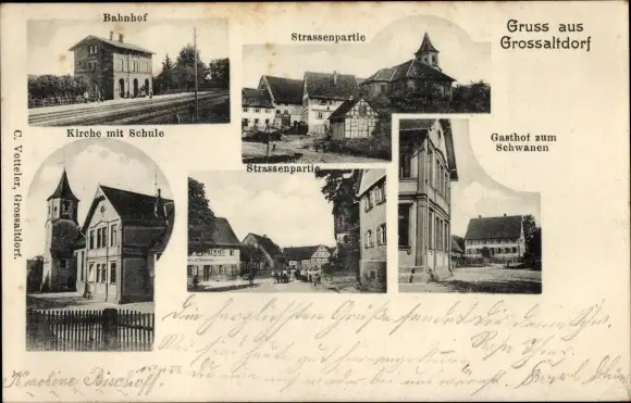 Ak Großaltdorf Vellberg im Kreis Schwäbisch Hall, Gasthof zum Schwanen, Bahnhof Gleisseite
