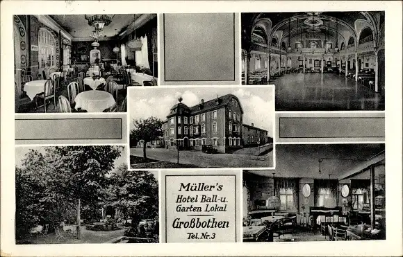 Ak Großbothen Grimma in Sachsen, Müllers Hotel, Saal, Garten