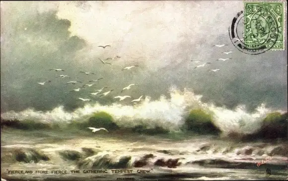 Ak Großbritannien, Fierce and more Fierce, Brandung, Möwen