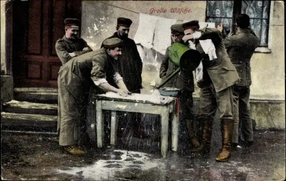 Ak Große Wäsche, Soldaten waschen Wäsche