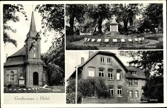 Ak Großenaspe in Holstein, Kirche, Ehrenmal, Schule