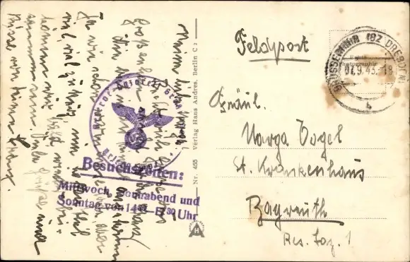 Zustand, siehe Scan, gelaufen, 1943 - ca 14 cm X 9 cm