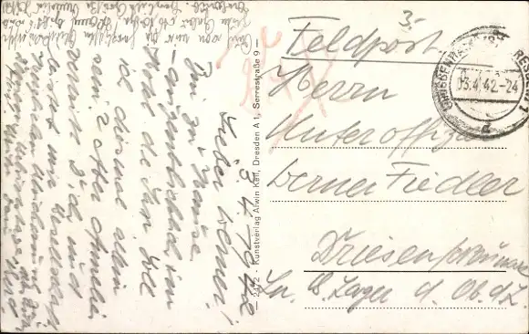 Zustand, siehe Scan, gelaufen, 1942 - ca 14 cm X 9 cm