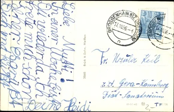 Zustand, siehe Scan, gelaufen, 1956 - ca 14 cm X 9 cm