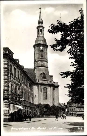 Ak Großenhain in Sachsen, Markt mit Kirche