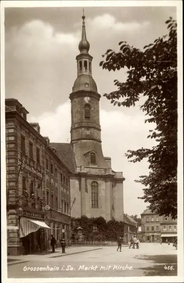 Ak Großenhain in Sachsen, Markt mit Kirche