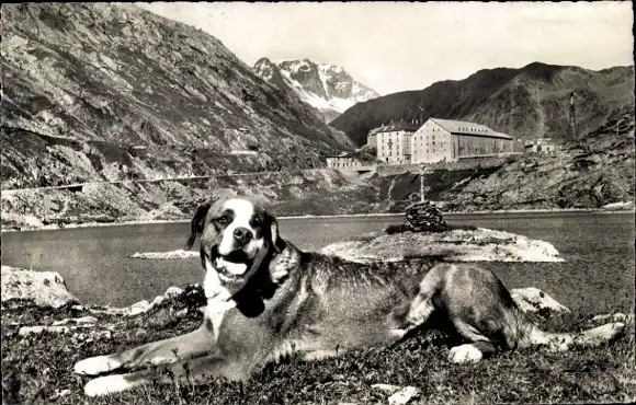 Ak Großer Sankt Bernhard Kanton Wallis, Hospice, Bernhardiner