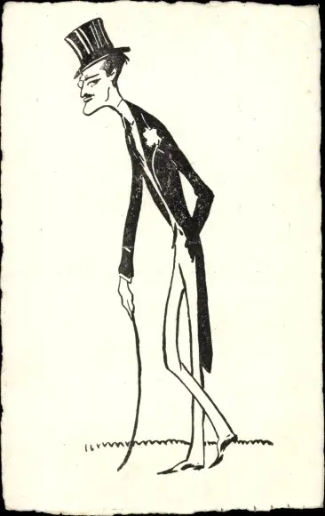 Ak Großer dürrer Mann im Frack mit Zylinder
