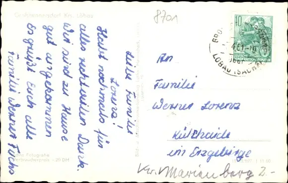 Zustand, siehe Scan, gelaufen, 1961 - ca 14 cm X 9 cm
