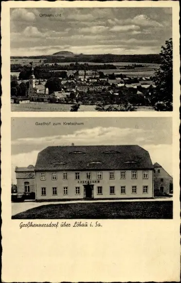 Ak Großhennersdorf Herrnhut in Sachsen, Panorama, Gasthof zum Kretscham