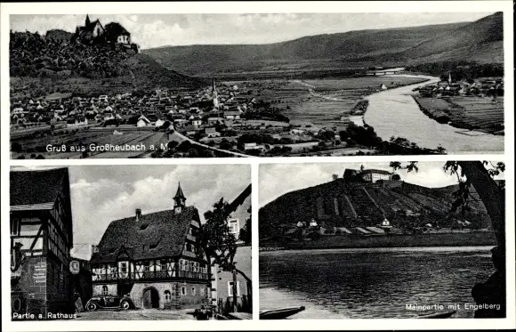 Ak Großheubach am Main Unterfranken, Gesamtansicht, Rathaus, Mainpartie mit Engelberg