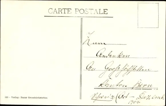 ungelaufen, datiert 1909, Rückseite beschrieben, sehr guter Zustand