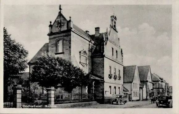 Ak Großostheim Unterfranken, Rathaus, Autos