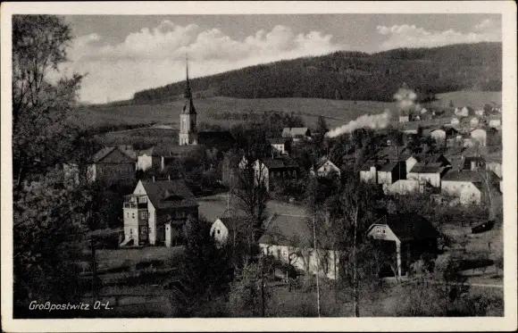Ak Großpostwitz in Sachsen, Ortsansicht, Kirchturm