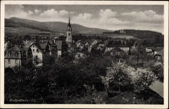 Ak Großpostwitz in Sachsen, Ortsansicht, Kirchturm