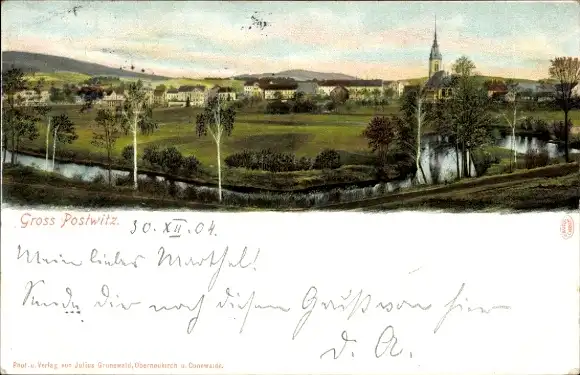 Ak Großpostwitz in Sachsen, Panorama, Kirche