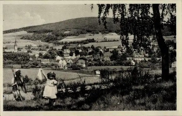 Ak Großpostwitz in Sachsen, Panorama, winkendes Kind