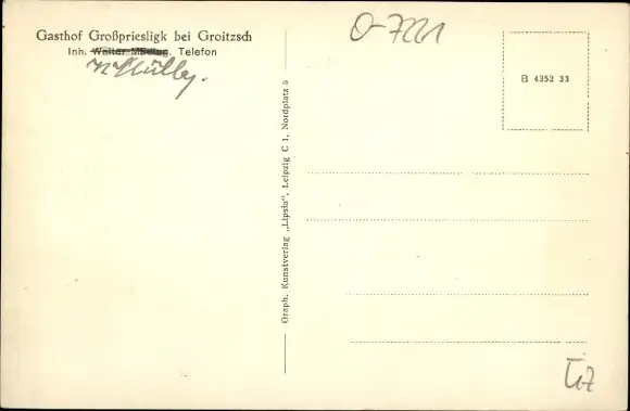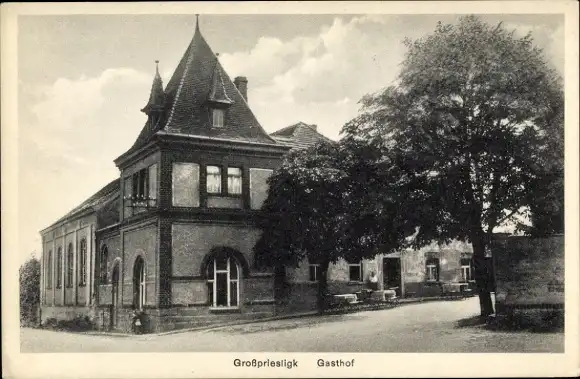 Ak Großpriesligk Groitzsch in Sachsen, Gasthof von Walter Mäding, Straßenansicht
