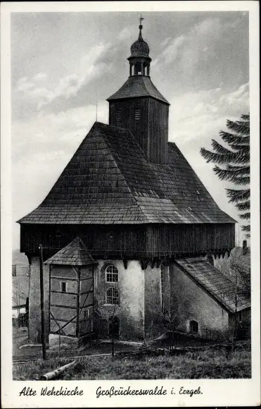 Ak Großrückerswalde im Erzgebirge, Alte Wehrgangkirche