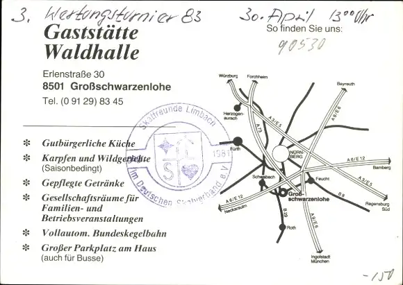 Ak Großschwarzenlohe Wendelstein in Mittelfranken, Gaststätte Waldhalle