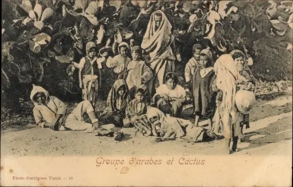 Ak Groupe d'arabes et Cactus, Gruppe von Kindern vor einem Kaktus