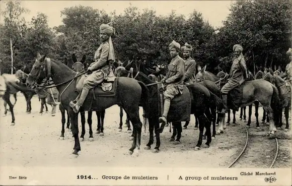 Ak Groupe de muletiers, indische Soldaten, Reiter