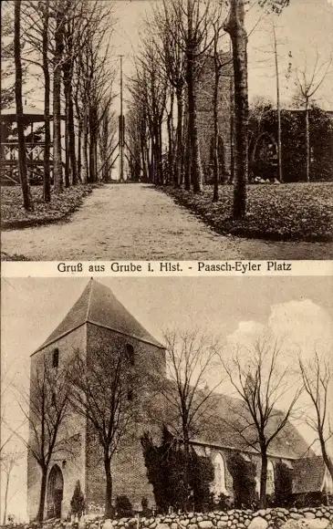 Ak Grube in Holstein, Paasch-Eyler Platz, Kirche