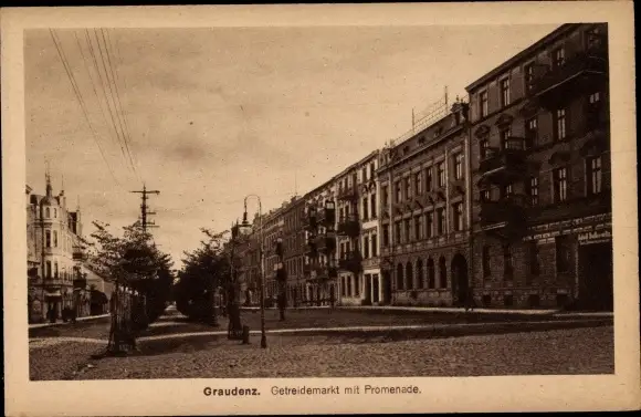 Ak Grudziądz Graudenz Westpreußen, Getreidemarkt mit Promenade