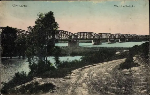 Ak Grudziądz Graudenz Westpreußen, Weichselbrücke