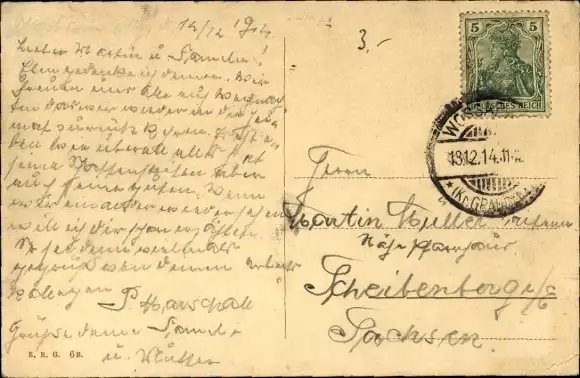 Zustand, siehe Scan, gelaufen, 1914 - ca 14 cm X 9 cm