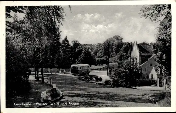 Ak Grünheide in der Mark, Teilansicht, Bus