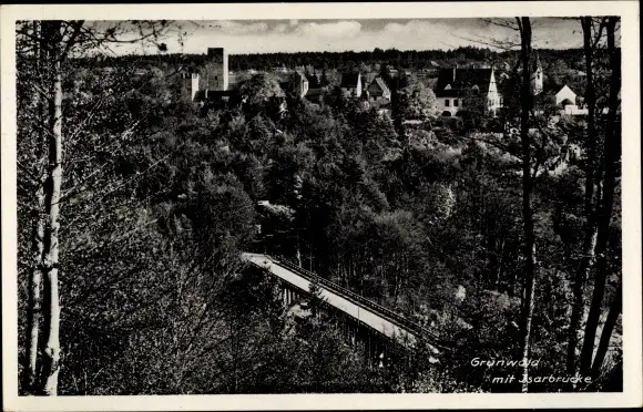 Ak Grünwald bei München, Ortsansicht mit Isarbrücke