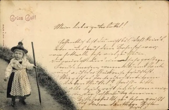 Ak Grüß Gott, Mädchen in Bayrischer Tracht