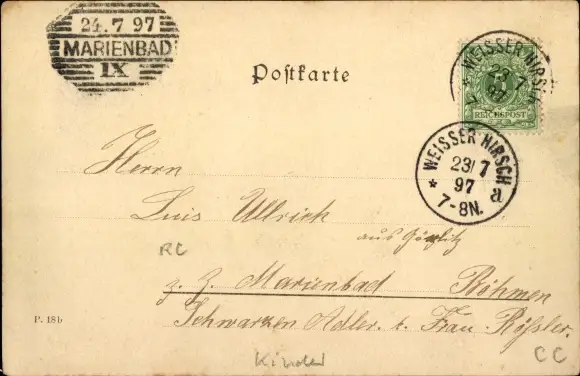Zustand, siehe Scan, gelaufen, 1897 - ca 14 cm X 9 cm