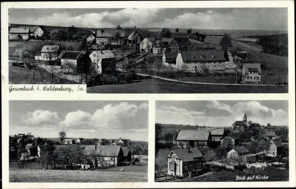 Ak Grumbach Callenberg in Sachsen, Gesamtansicht, Teilansicht mit Kirche