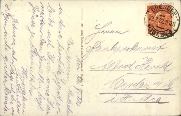 Zustand, siehe Scan, gelaufen, 1922 - ca 14 cm X 9 cm