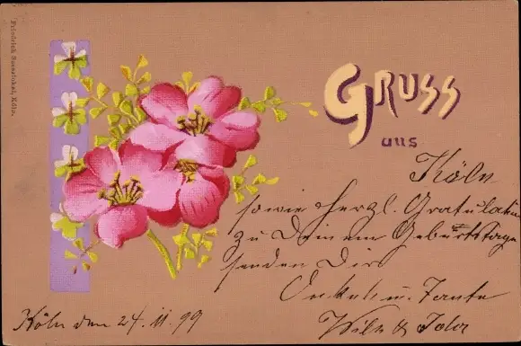 Ak Gruß, Blüten, Kleeblätter