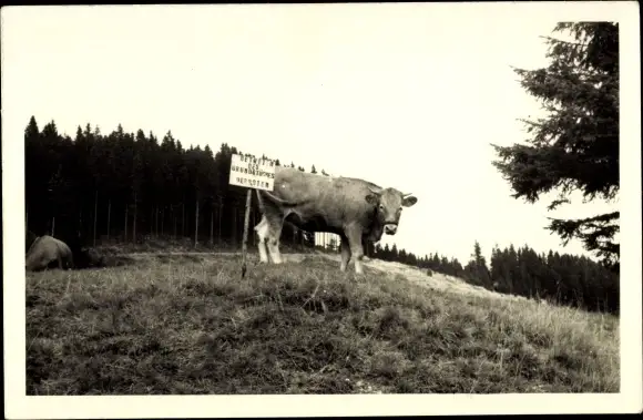 Ak Gruß aus dem Thüringer Wald, Rind auf der Weide