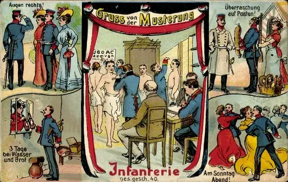 Ak Gruß von der Musterung, Infanterie, Sonntagabend, Wasser und Brot, Posten
