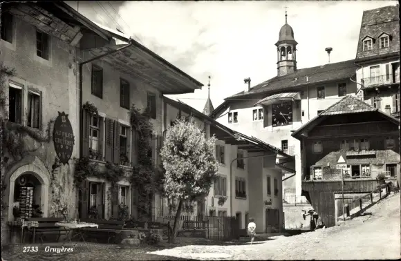 Ak Gruyères Kanton Freiburg Schweiz, Dorfpartie