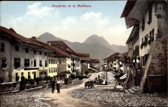 Ak Gruyères Kanton Freiburg Schweiz, Ortspartie, Moleson