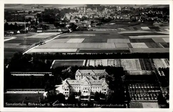 Ak Gryfów Śląski Greiffenberg Schlesien, Sanatorium Birkenhof, Fliegeraufnahme