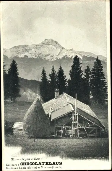 Ak Gryon Kanton Waadt, Ortsansicht, Wohnhaus, Berggipfel
