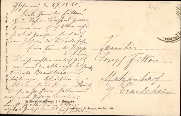 Zustand, siehe Scan, gelaufen, 1920 - ca 14 cm X 9 cm
