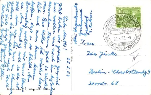 Zustand, siehe Scan, gelaufen, 1953 - ca 14 cm X 9 cm
