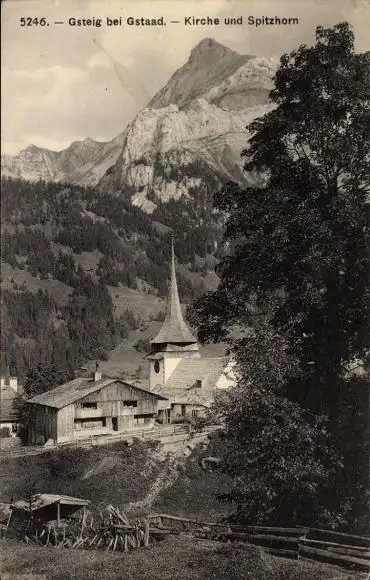 Ak Gsteig bei Gstaad Kanton Bern, Kirche, Spitzhorn