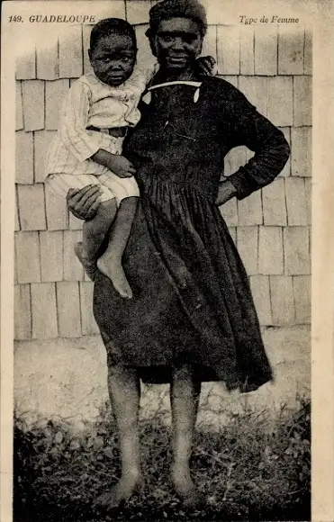 Ak Guadeloupe, Frau mit Kind, Porträt