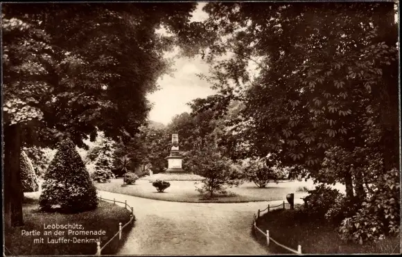 Ak Głubczyce Leobschütz Schlesien, Partie an der Promenade mit Lauffer-Denkmal