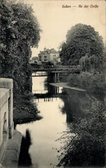 Ak Guben in der Niederlausitz, Neißepartie, Brücke